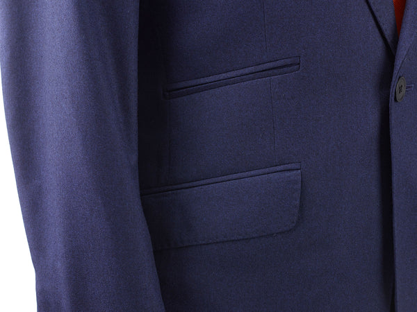 Our Orange Label French Blue Flannel Jackets have been perfected in-house over a period of time to achieve the best fit possible. These suits have a modern twist but also keep the traditional aspects you would expect from a bespoke half canvassed jacket.